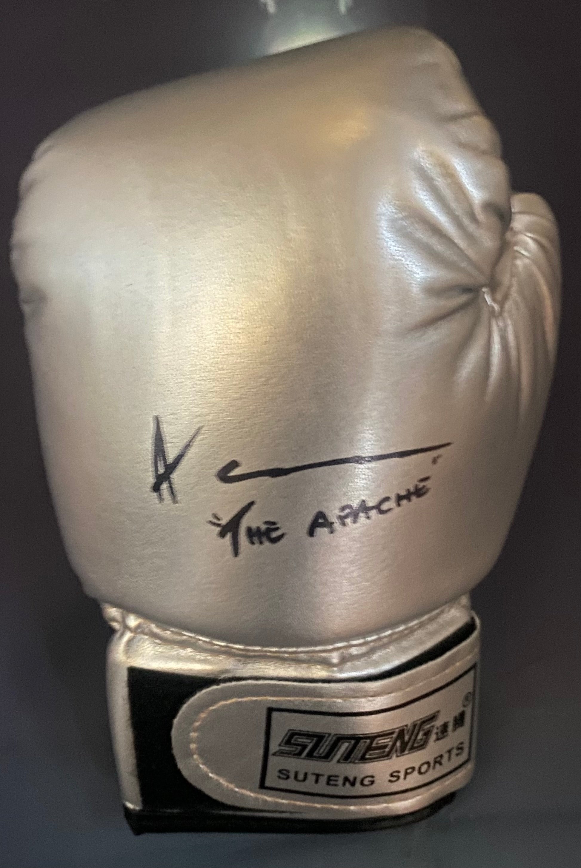 "Experience the thrill of boxing with this signed glove by Belfast's own champion, Anthony (The Apache) Cacace. As a former IBF world champion and current IBO world champion, this glove holds a powerful symbol of determination and victory. Perfect for any boxing enthusiast or collector."